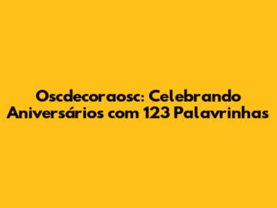 Oscdecoraosc e as 123 palavrinhas são um convite para a criatividade, para a originalidade e para a celebração da vida. É uma forma de transformar cada aniversário em uma experiência única e inesquecível, onde as palavras se tornam a estrela principal. Então, preparem-se para embarcar nessa jornada mágica, onde a imaginação não tem limites e a alegria é contagiante.