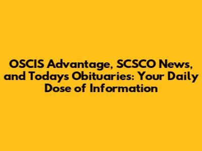 OSCIS Advantage, SCSCO News, And Today's Obituaries