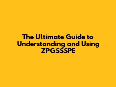 The Ultimate Guide To Understanding And Using ZPGSSSPE
